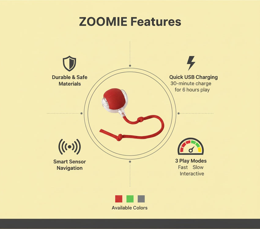 Watch the zoomieball in action with playful pups and curious kittens. See how the ball's unpredictable movements keep pets entertained for hours.
